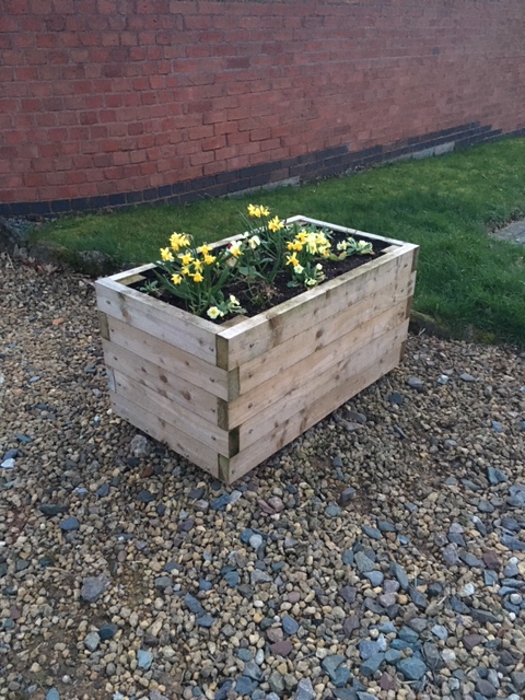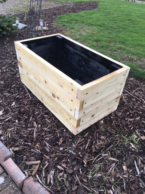 Long lasting, durable, Wooden Planters, hand made using treated fence rails, secured with 70mm turbo coach screws & painted inside and underneath with black bitumen